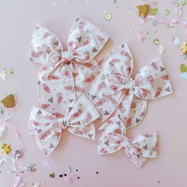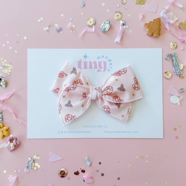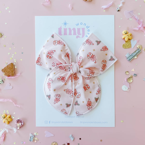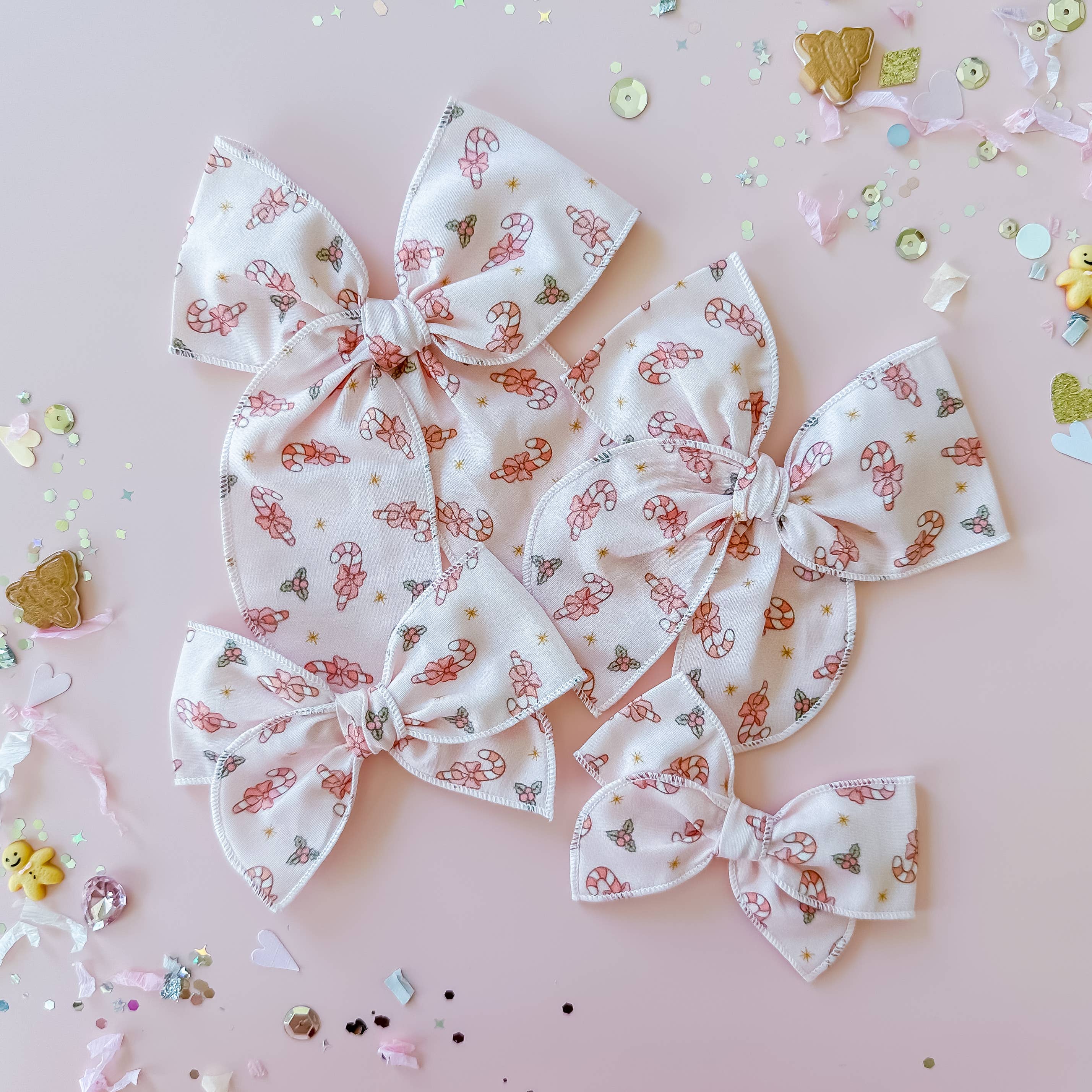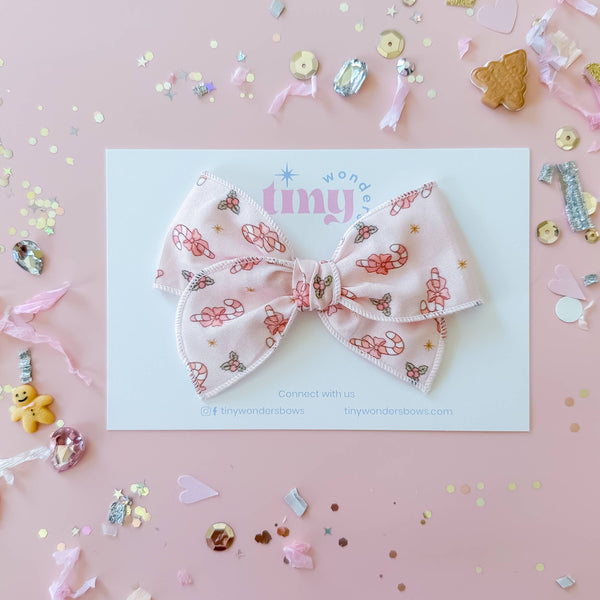 Candy Canes on Pink Bow – Handmade Holiday Hair Accessory, Festive Gift