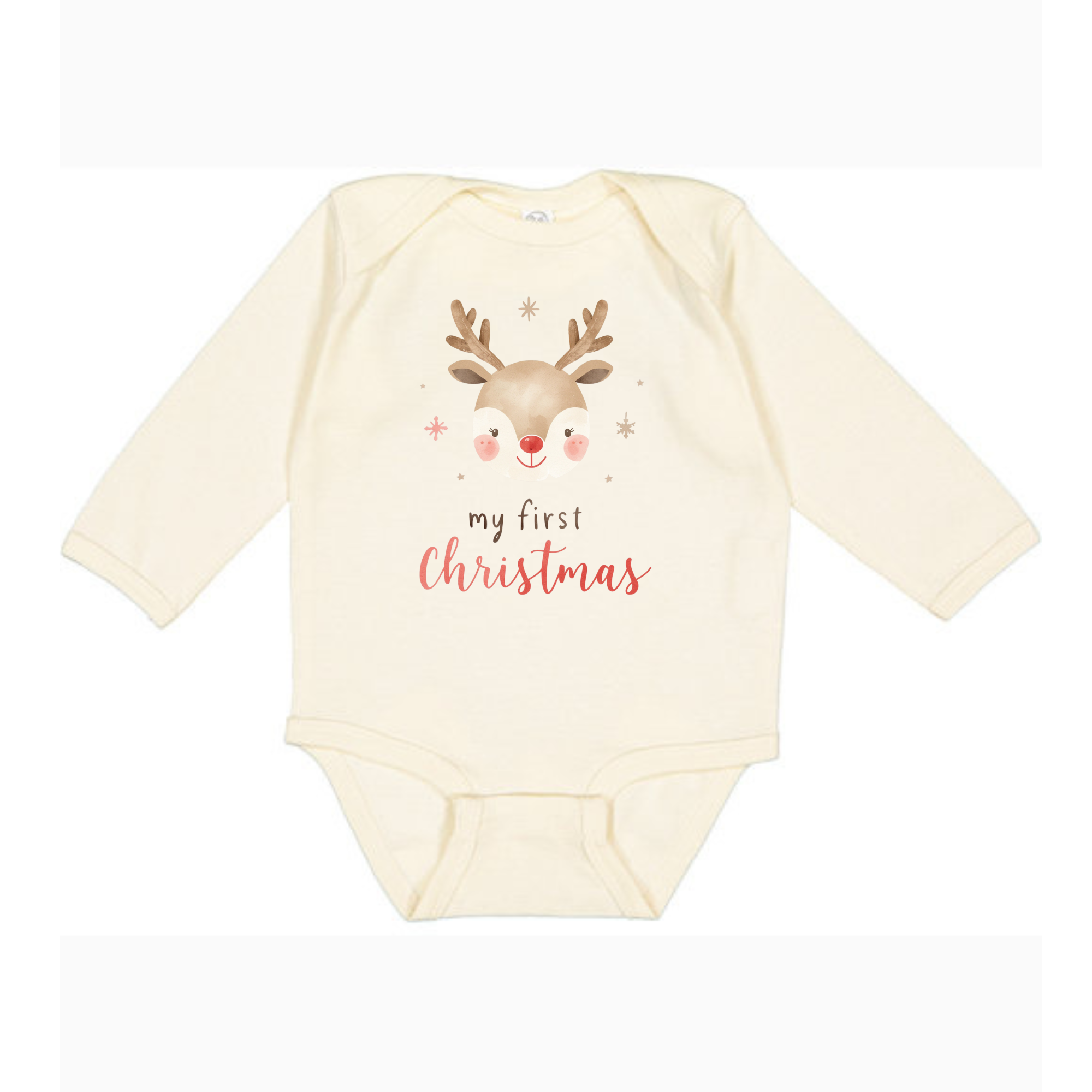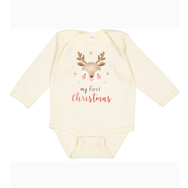 Celebrate your little one’s first holiday with the My First Christmas Onesie! Featuring an adorable reindeer design, this sweet and special outfit keeps your baby cozy while spreading festive joy. Perfect for capturing those precious holiday memories and making their debut Christmas extra magical.