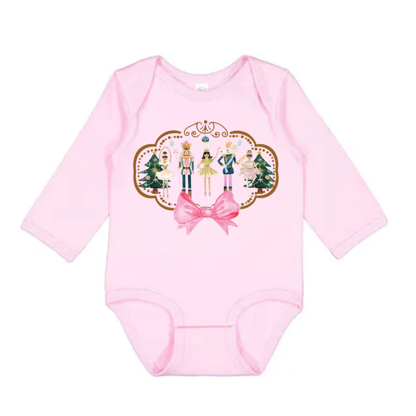Celebrate your little one's first holiday season in adorable style with this pink Nutcracker baby onesie. Soft and cozy, it keeps your baby comfy while adding a festive touch perfect for Christmas photos and family gatherings. This charming outfit makes holiday moments even sweeter and is sure to become a treasured keepsake.