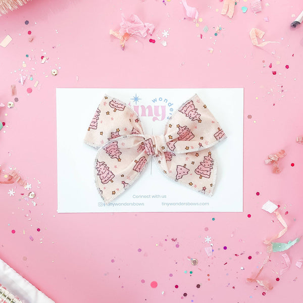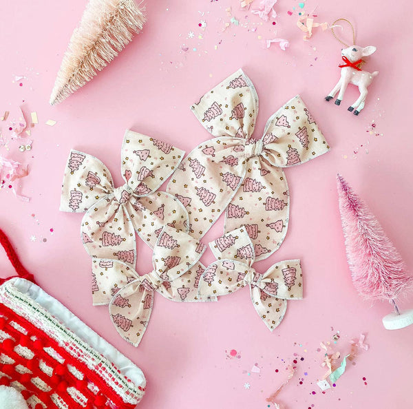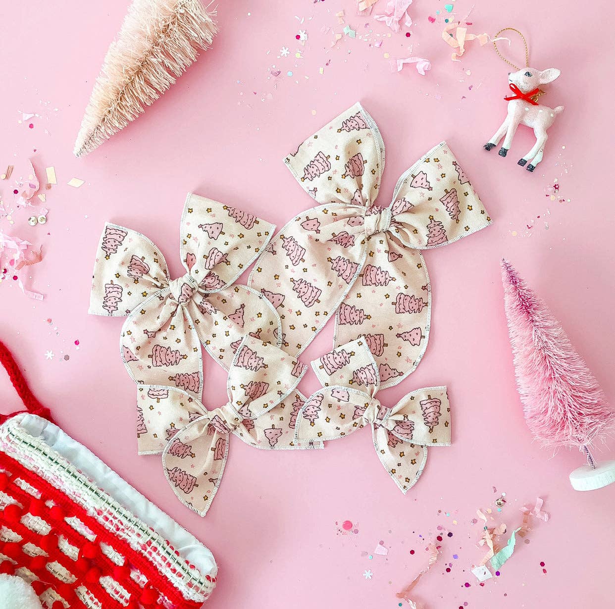 Pink Christmas Trees Bow – Festive Holiday Hair Accessory, Handmade Gift