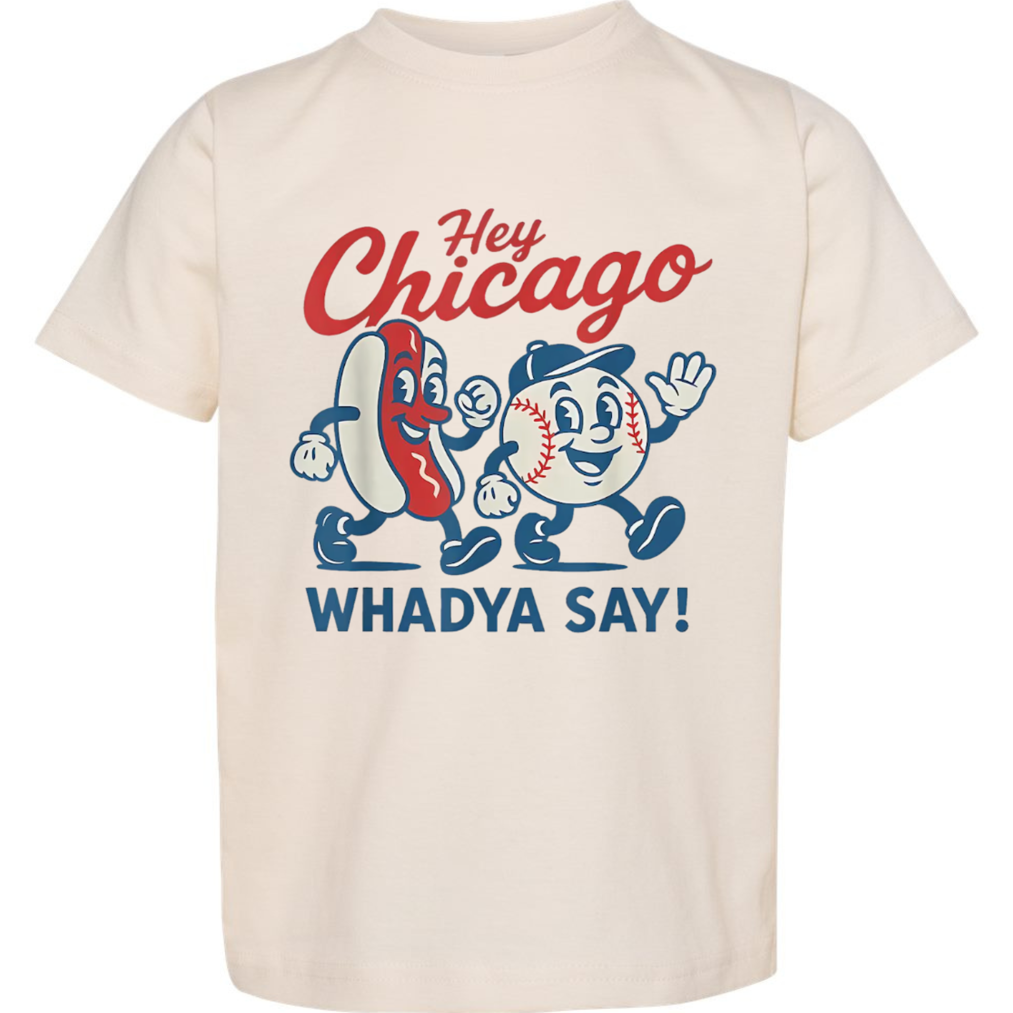 Hey Chicago, Whadya Say | Chicago Baseball Graphic T-Shirt | Kids Baseball Graphic Shirt
