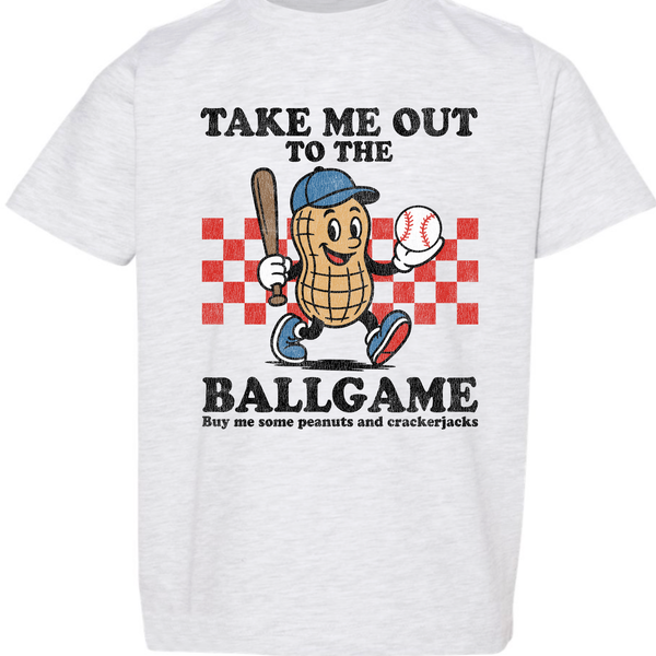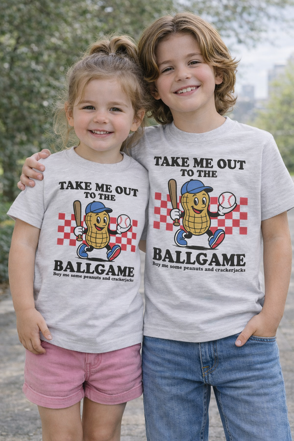Featuring our playful vintage peanut mascot, bold “TAKE ME OUT TO THE BALLGAME” lettering, and that classic red checkerboard backdrop, this tee is full of charm and old-school ballpark vibes. It’s fun, a little retro, and instantly recognizable.