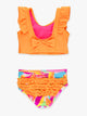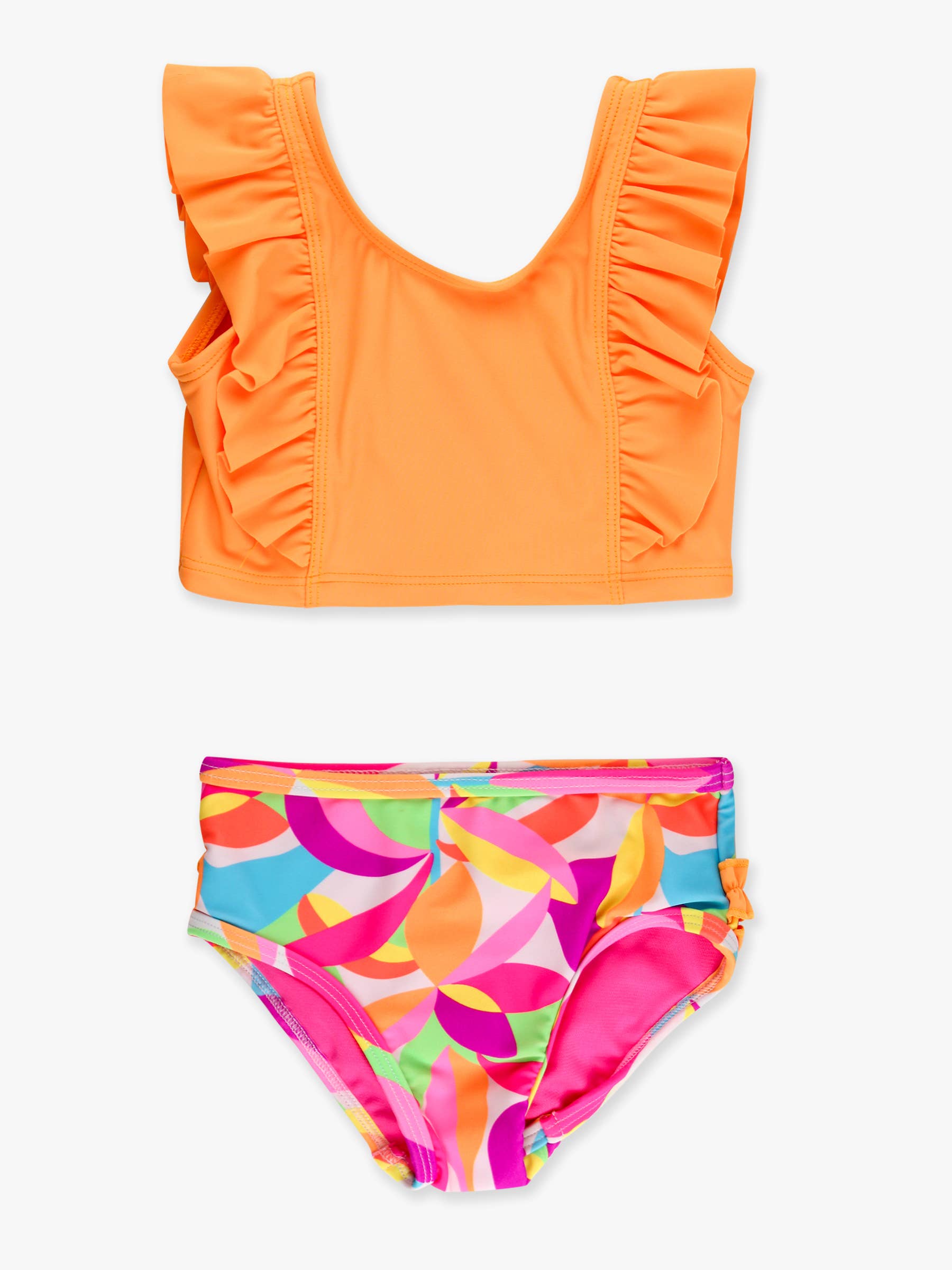 Girls Neon Tropical Adventure Waterfall Tankini 2-Piece Swimsuit with Signature Rear Ruffles