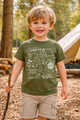 The earthy olive green paired with crisp white graphics gives it that cool, outdoorsy feel (without trying too hard). It’s the kind of shirt he’ll want to wear to school, to the park, on a camping trip, or while building a “fort” in the living room.