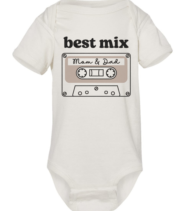 Introducing the Mix Tape Onesie—a playful tribute to the perfect blend of mom and dad! This unisex essential features a retro-inspired design printed directly into soft, breathable fabric for maximum comfort and durability. With no films or iron-ons to worry about, your little one stays safe and cozy all day long. Built to last through countless cuddles and adventures, it's the ideal gift for celebrating your bundle of joy.