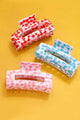 Capture hearts with these charming Valentine claw clips that blend style and comfort seamlessly. Featuring an eye-catching heart design with intricate detailing, these clips work beautifully for everything from everyday ponytails to special occasion updos. Crafted from lightweight, durable materials, they stay comfortable throughout the day without weighing down your hair. At 3.25" wide and 2" long, they offer the perfect balance of holding power and elegant appeal. Whether you're looking for a subtle romantic touch or a bold fashion statement, these clips deliver versatility with undeniable charm.