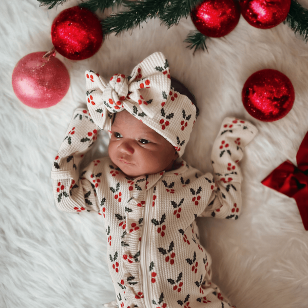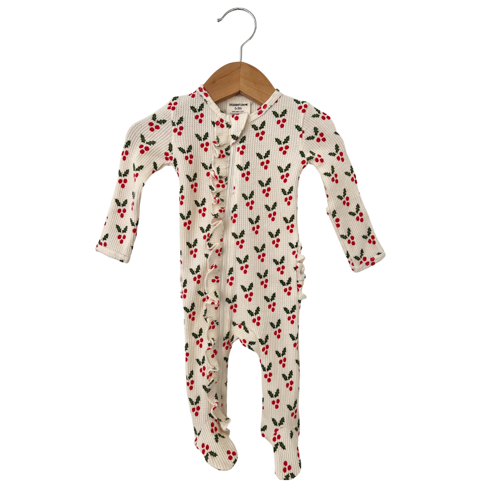 Have a holly jolly Christmas with our delightful holly print, bringing a touch of tradition and festive cheer to every little one's celebration this festive holiday season! Easy Zip for quick changes!
