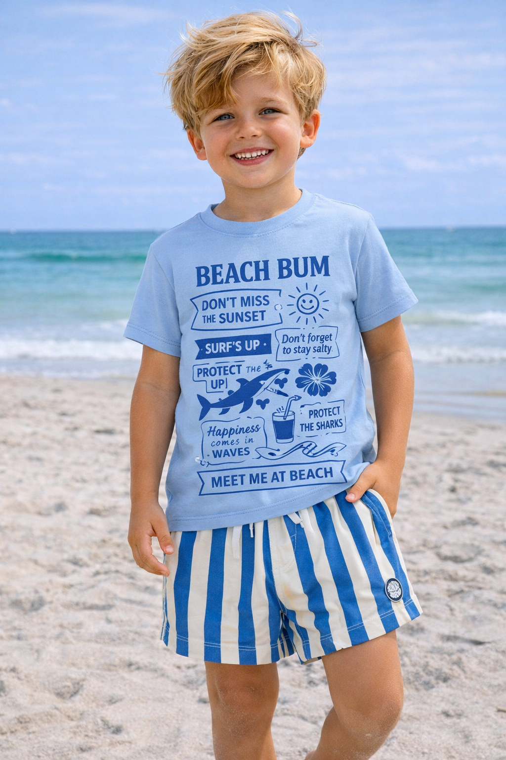 Sun on your face, sand in your toes, and waves on repeat. This cool coastal graphic tee is made for little beach lovers who live for salty air and sunset skies.