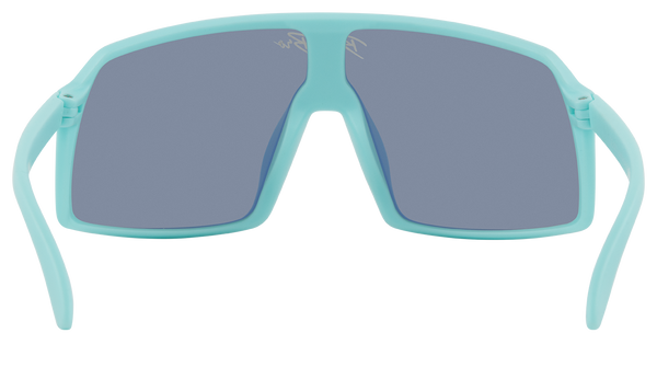 Protect your child's eyes in style with these striking Monteverde sunglasses featuring teal frames and reflective lenses that reduce glare while keeping UV rays at bay. The iconic BinkyBro signature logo sits prominently on the lens, making these shades instantly recognizable and perfect for outdoor adventures, beach days, or everyday wear.