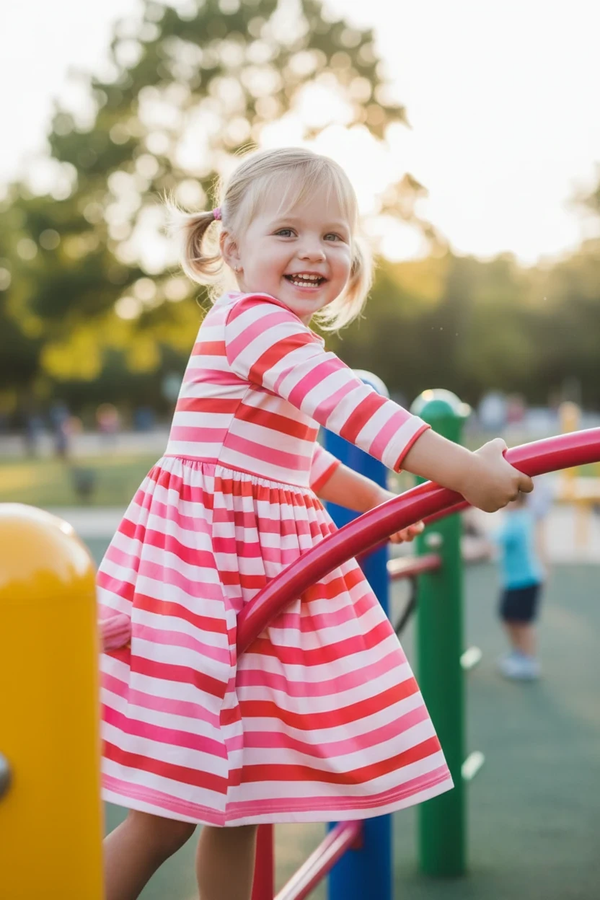Bright, bold, and beautifully twirl-worthy—the She’s Lovely 3/4 Sleeve Pocket Twirl Dress brings playful charm to every moment. Designed for toddlers and girls who love to move, this striped dress features vibrant colors and a flattering silhouette that makes everyday outfits feel extra special.