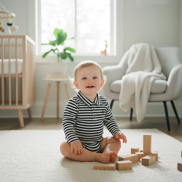 Snuggle up in pure comfort with this adorable 100% cotton striped polo onesie! Crafted from soft, breathable fabric, it's perfect for cozy lounging and casual playtime. The classic polo styling adds a touch of charm, and best of all, it coordinates beautifully with our matching big brother polo shirt for coordinated sibling style. Gentle on delicate skin and easy to care for, this Me&Henry favorite is a wardrobe essential for little ones who love to stay comfy all day long.