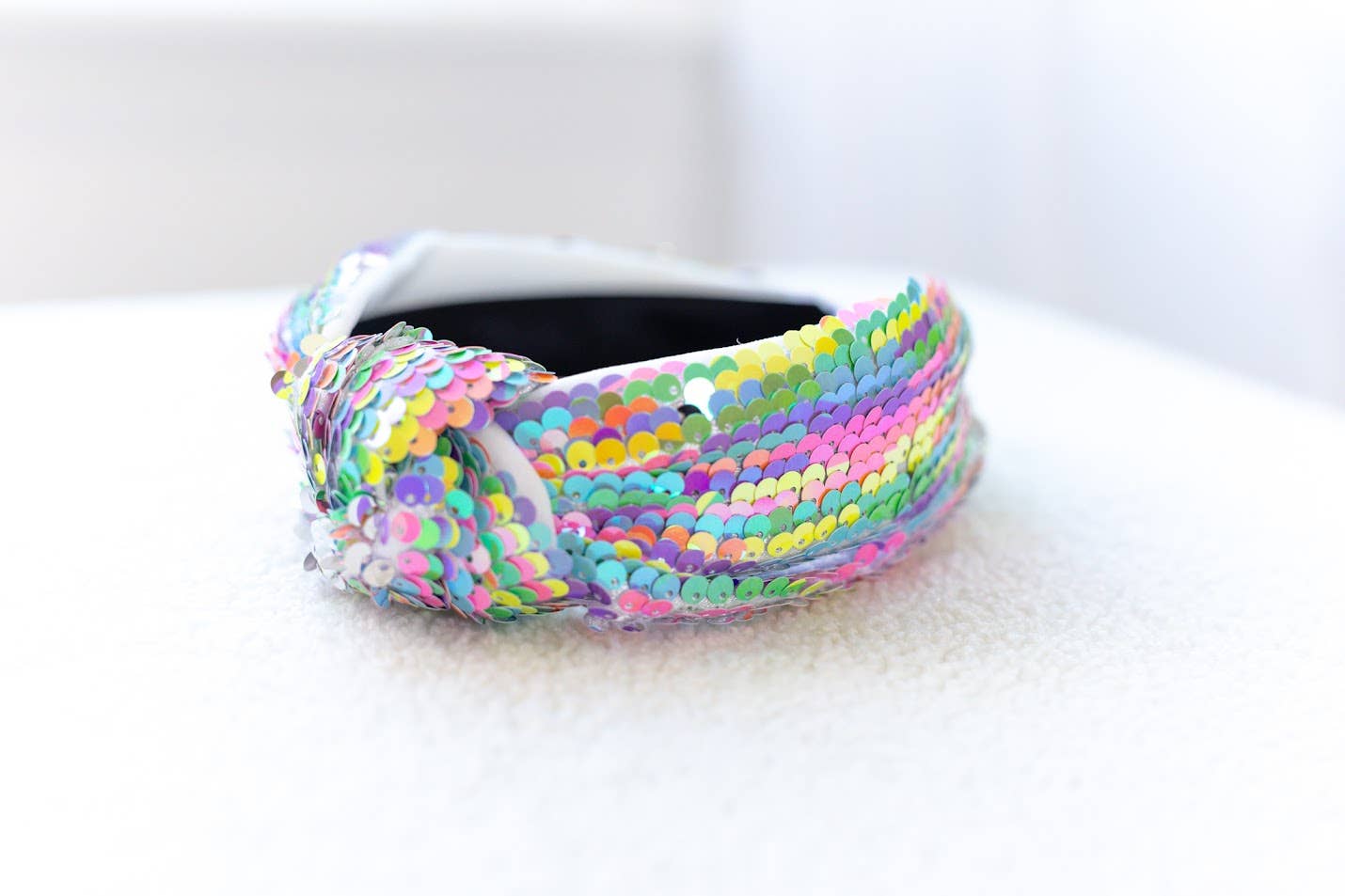 Elevate your accessory game with this enchanting beaded headband featuring a mesmerizing cascade of flip sequins in soft pastel rainbow hues. Whether you're dressing up for a special occasion or adding everyday sparkle, this whimsical piece transforms any look into something magical. The playful design catches light beautifully, making it an instant conversation starter. Sized to fit kids ages 5 and up through adults, it's the perfect way to express personality and style. Fits: Kids 5Y Girl - Adult