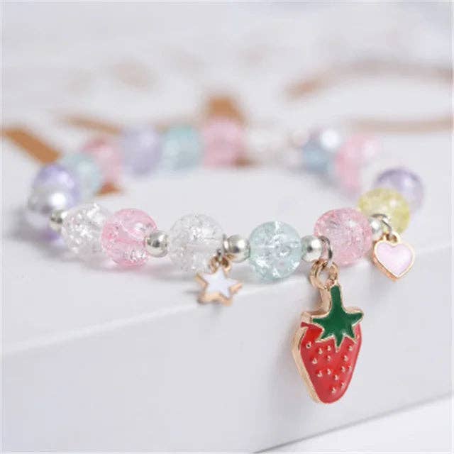 Crushed Glass Bead Stretch Bracelet | Strawberry Charm Bracelet