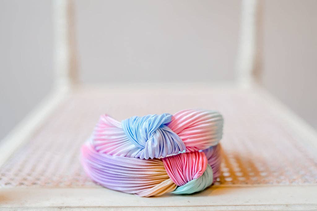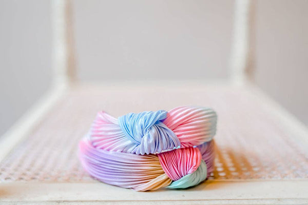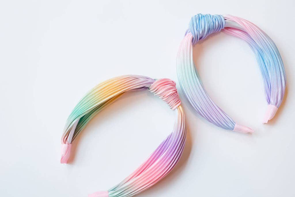 Add a pop of color to any outfit with this charming pleated ombre headband. Featuring a soft rainbow gradient and convenient knot design, it's the perfect accessory for girls who love vibrant style. Easy to wear and comfortable all day long, this headband pairs beautifully with any ensemble.
