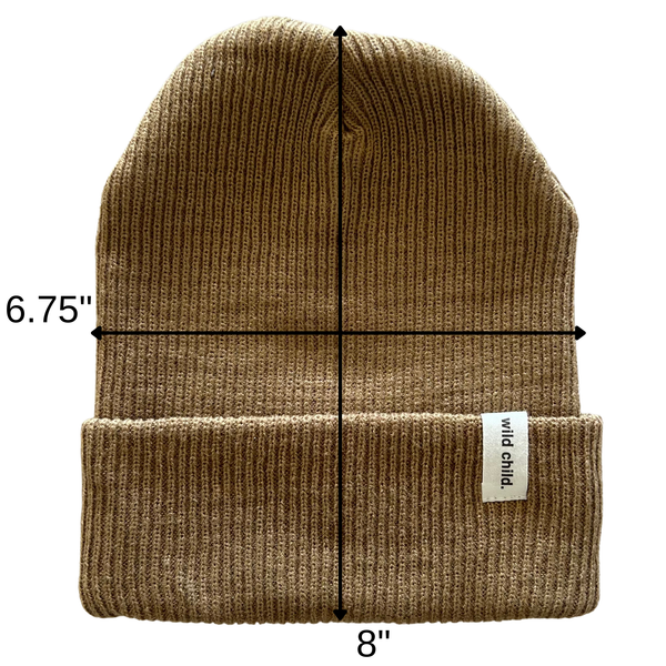Top off any look with the Denver James Wild Child Beanie! Minimalist yet bold, this classic knit hat features a “Wild Child” statement on the front — the perfect everyday essential for little explorers.