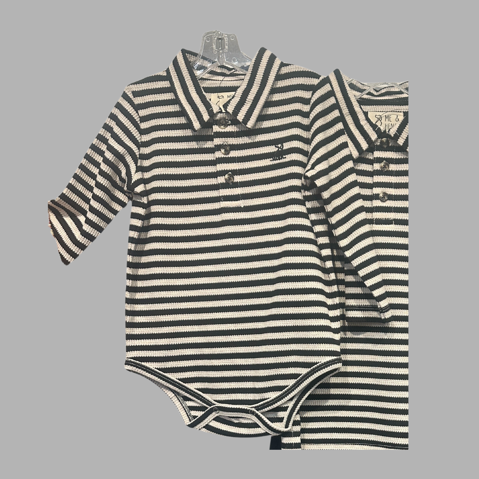 Snuggle up in pure comfort with this adorable 100% cotton striped polo onesie! Crafted from soft, breathable fabric, it's perfect for cozy lounging and casual playtime. The classic polo styling adds a touch of charm, and best of all, it coordinates beautifully with our matching big brother polo shirt for coordinated sibling style. Gentle on delicate skin and easy to care for, this Me&Henry favorite is a wardrobe essential for little ones who love to stay comfy all day long.
