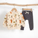 The Woodland Boy Organic Cotton Set features a cozy top crafted from soft organic cotton terry with a relaxed, slightly oversized fit and a fun animal print. The matching bottoms are made from a ribbed bamboo-organic cotton blend, complete with an elastic waistband and a handy drawstring for the perfect fit.